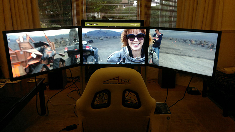 Soporte Externo de 3 pantallas de 19″ a 27″ realizado en perfilería de aluminio fabricado por Total Spanish Simulator. Robustez y ajustabilidad máximas.